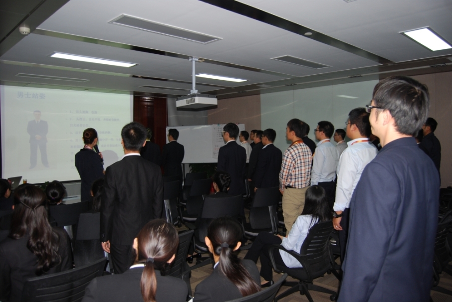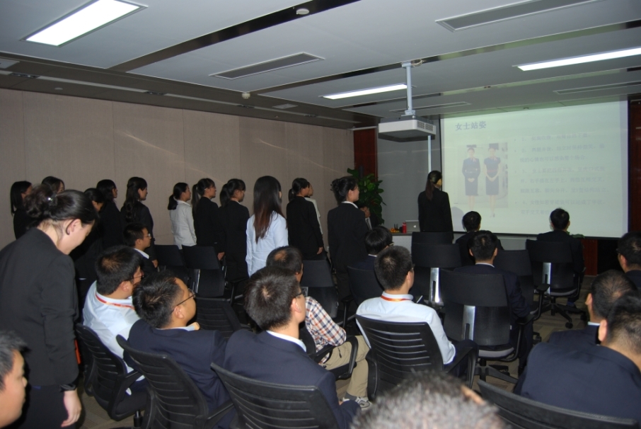 通過女士和男士日常行為的示范,讓同事們知道了符合職場禮儀的站姿、坐姿、行走、下蹲等標準,讓大家印象深刻。