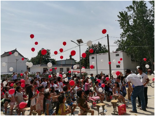 隨后,現(xiàn)場嘉賓和小朋友們一起放飛了印有美盛LOGO標(biāo)志的氣球,五顏六色的氣球伴隨著孩子們的笑容和歌聲緩緩的飛向的天空的懷抱,放飛了氣球,也是放飛了孩子們的夢想。希望孩子們都能夠依靠自己的努力來改變命運(yùn),實(shí)現(xiàn)理想,美盛地產(chǎn)集團(tuán)將會繼續(xù)伴隨這些孩子們的成長,傳遞美盛正能量。