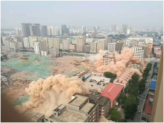 美盛教育港灣項目涉及鄭州市金水區廟李、陳砦兩個行政村的城中村拆遷改造,該項目位于文勞路北、宏明路南、索凌路東、鶴壁路西區域,共涉及村民1759戶,動遷人口43萬余人,拆遷總面積達450萬平方米。2017123日為開拓拆遷工作面,已對陳砦9棟樓房進行了第一次爆破拆除,2017612日針對廟李村6棟高樓集中實施了第二次爆破,此次是對陳砦村36棟高樓進行的第三次大規模的集中爆破拆除。此次爆破完成后,該區域的房屋拆遷工作已基本完成。