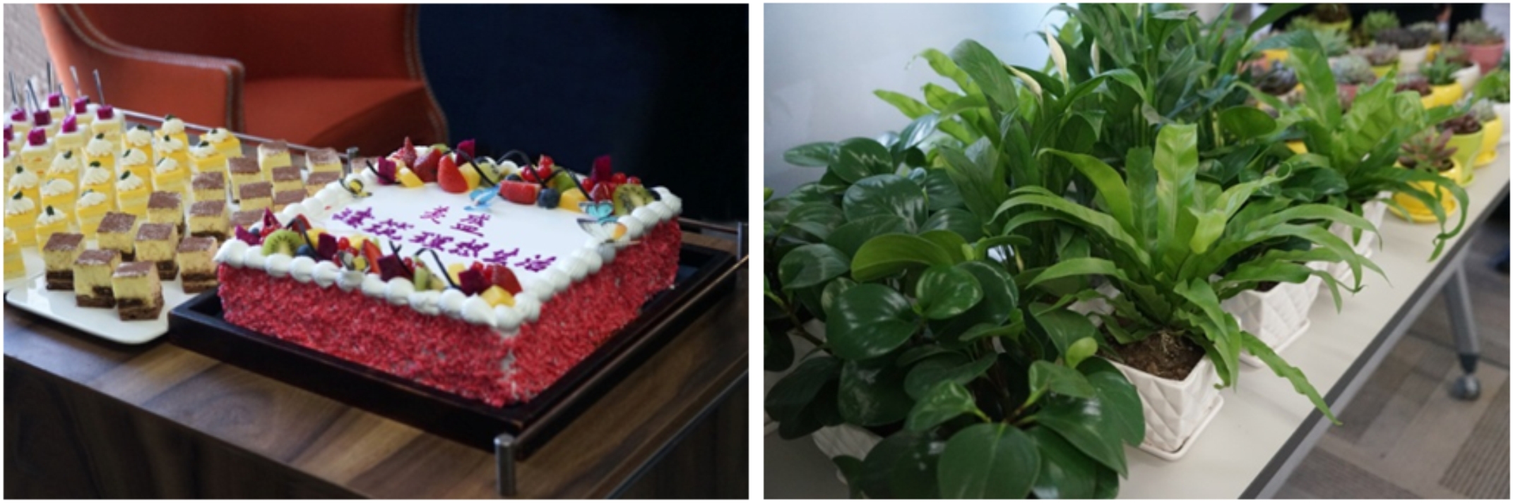 喬遷儀式的現(xiàn)場,行政管理中心的同事還精心準(zhǔn)備了節(jié)目和可口的蛋糕甜品,并為每位同事贈送了一盆桌擺綠植。祝愿兩個部門在新的辦公環(huán)境中順心順意,共創(chuàng)佳績。