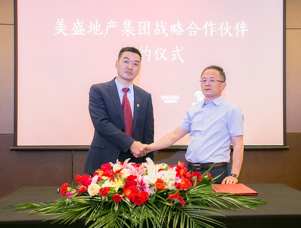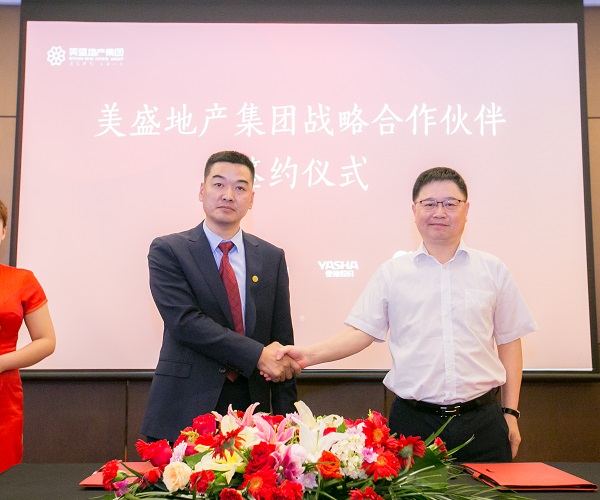 美盛地產集團副總裁蘇揚先生與浙江亞廈裝飾股份有限公司亞廈裝飾總經理張小明簽署戰略合作協議