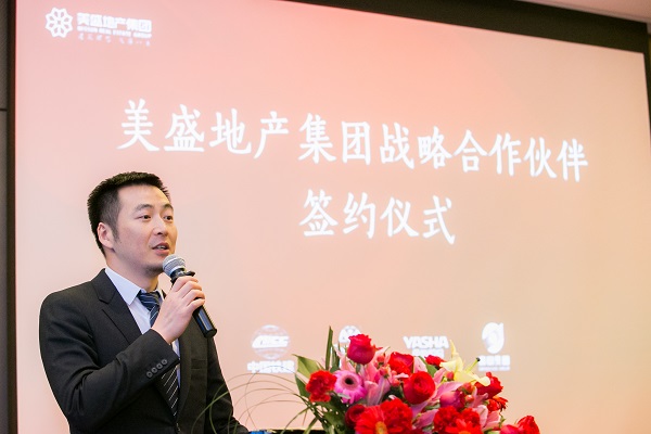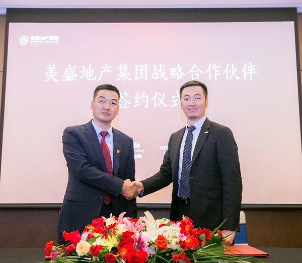 美盛地產集團副總裁蘇揚先生與蘇州金螳螂建筑裝飾股份有限公司副總裁金仁濤簽署戰略合作協議
