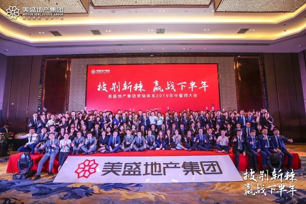 美盛地產集團營銷體系2019年中誓師大會在燃情、熱血、激昂的氛圍中圓滿舉行!滿載榮光的2019已然過半,充滿希望和挑戰的下半年已經拉開帷幕。贏戰2019下半年,沖刺百億,美盛將再續熱銷傳奇!