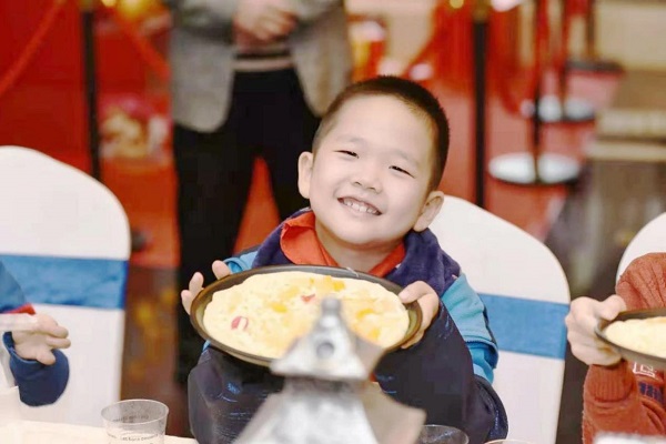 |小業(yè)主開心展示自己的披薩