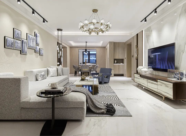 客廳地面通常作為家中實用頻率最高且容易臟的地方,美盛·北龍臺以簡潔優美顏色、紋路,塑造優雅大氣的溫馨家居氛圍。表面經過特殊拋光處理,堅硬耐磨防滑,在使用過程中不易出現斷裂、變形、刮花等現象,耐腐蝕性和抗污性強,容易清潔。