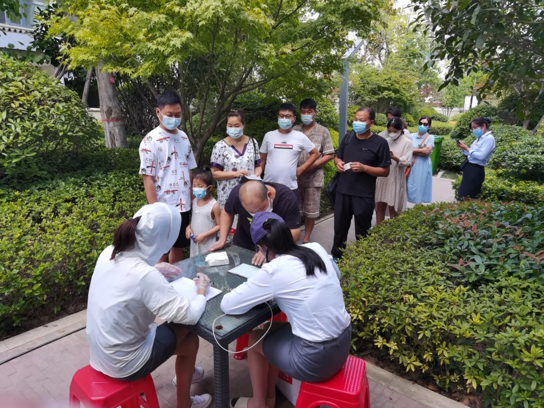 8月6日晚,在接收到政府部門將在位于中央公園生活片區的美盛·鹿鳴湖壹號開展首輪全員核酸檢測通知后,鹿鳴湖壹號迅速成立疫情防控指揮中心,抽調支援連夜開展工作,迅速搭建帳篷、備好桌椅,線上或上門通知業主有序下樓檢測,與醫護人員一起星夜奮戰,助力核酸檢測工作順利展開。