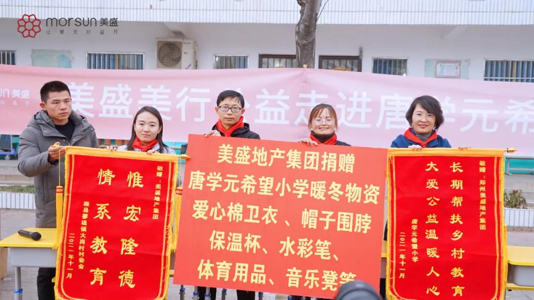 總有人乘著愛的翅膀,托起孩子的夢想;總有人在最美的時光,呵護著學生的成長。2021年12月15日,美盛集團美行公益“筑童夢 美好盛開”主題活動走進商丘市睢縣蓼堤鎮唐學元希望小學,為那里的200多名孩子帶去溫馨的禮物,并同他們一起度過了美妙且有趣的一天。