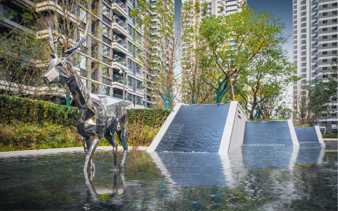 步入園內(nèi),季節(jié)雖然已經(jīng)過了立冬,但銀杏林、五角楓林、櫸樹林、香樟林、烏桕林等名貴樹種組成的五大林區(qū),依舊郁郁蔥蔥;不遠(yuǎn)處的典雅鏡面水景,流水潺潺,這是中原土地上的尊貴儀式感。