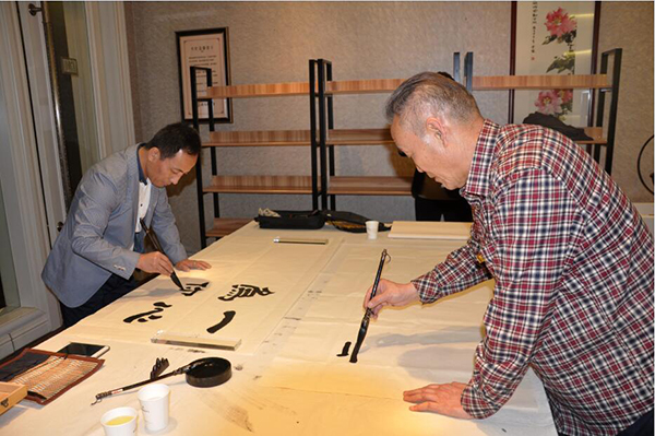 有幸請(qǐng)到中國(guó)當(dāng)代著名毛體書(shū)法家、國(guó)禮藝術(shù)家楊新平先生以及河南省書(shū)法協(xié)會(huì)會(huì)員、河南硬筆書(shū)法家協(xié)會(huì)會(huì)員、許昌市東城區(qū)弘圣美術(shù)館名譽(yù)館長(zhǎng)劉振侖先生為我們現(xiàn)場(chǎng)題字,兩位大書(shū)法家現(xiàn)場(chǎng)揮毫潑墨,為儀式增添濃重的文化氣息。