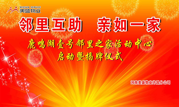 2019年4月21日上午9點(diǎn),伴隨著潤(rùn)雨細(xì)無(wú)聲的點(diǎn)綴,主持人宣布美盛物業(yè)許昌分公司鹿鳴湖壹號(hào)小區(qū)“鄰里之家”活動(dòng)中心啟用暨揭牌儀式正式開(kāi)始。