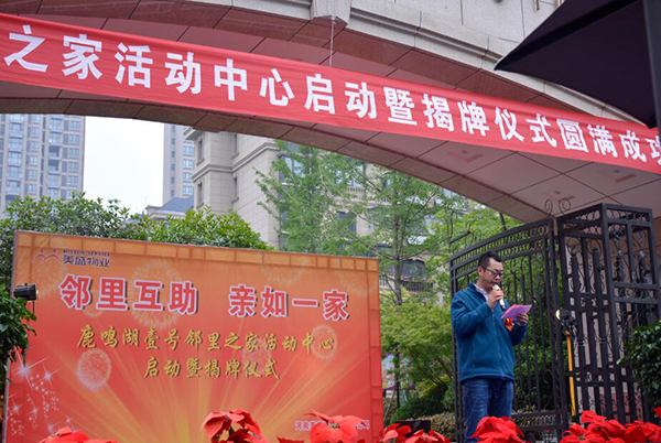 鹿鳴湖壹號(hào)業(yè)主代表發(fā)言,對(duì)“鄰里之家”活動(dòng)中心表達(dá)熱切期望