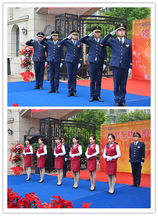 開(kāi)幕儀式,我們物業(yè)秩序與客服團(tuán)隊(duì)首先亮相,進(jìn)行精彩日常高端服務(wù)的風(fēng)采展示。禮賓團(tuán)隊(duì)標(biāo)準(zhǔn)的敬禮、客服團(tuán)隊(duì)優(yōu)雅嫻熟的服務(wù)禮儀及秩序團(tuán)隊(duì)鏗鏘有力的盾牌表演,贏得到場(chǎng)嘉賓和業(yè)主的陣陣掌聲。