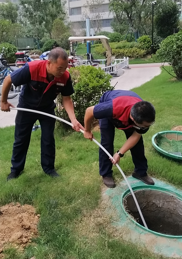 對照室外管網(wǎng)圖和實際情況,對所有污水井、集水坑、化糞池、雨水井及其附屬管線進(jìn)行檢查,并檢查排水管線與周邊市政排水管網(wǎng)的接口,發(fā)現(xiàn)井蓋和井篦破損、管線堵塞(例如:管線坍塌、有積水、有雜物等),及時維修或清理,并注意做好檢查、清理和維修的工作記錄。