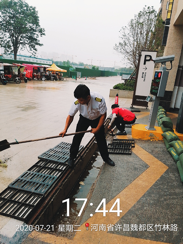 2020年7月21日11時,收到氣象臺發(fā)布省內(nèi)大部分城市迎來暴雨的預(yù)警,美盛物業(yè)汛期前成立的防汛領(lǐng)導(dǎo)小組,迅速集結(jié)完畢,切實采取各種有效措施,真切關(guān)注各項目安危,維護(hù)廣大業(yè)主正常工作、生活環(huán)境,保持良好的衛(wèi)生環(huán)境及秩序,立足于做好防汛、防災(zāi)準(zhǔn)備工作,迅速啟動防汛應(yīng)急預(yù)案。