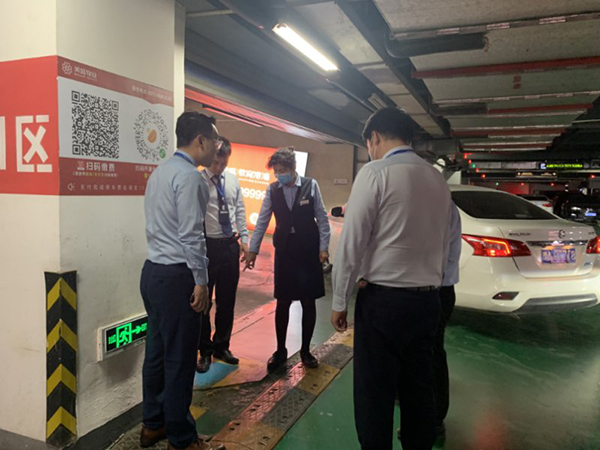 美盛中心寫字樓項目暴雨前,項目負(fù)責(zé)人帶動各部門進(jìn)行巡視排查