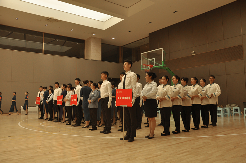 良好的形象塑造,是為更好的日常物業客戶服務工作。5個項目代表隊通過走、站、坐、蹲、指引等動作展示團隊風采。