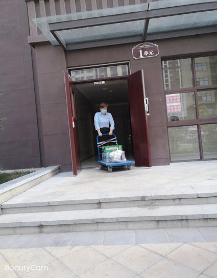 每每看到她拉著板車(chē),低頭對(duì)照手機(jī)里業(yè)戶的生活物資清單,內(nèi)心無(wú)法克制的暖流翻涌,眼淚漸漸盈眶。她可以選擇不聞不問(wèn)、裝聾作啞,也可以選擇推脫或是草草了事,但是她沒(méi)有退后,不僅給隔離戶提供所需物資,還有應(yīng)必答。