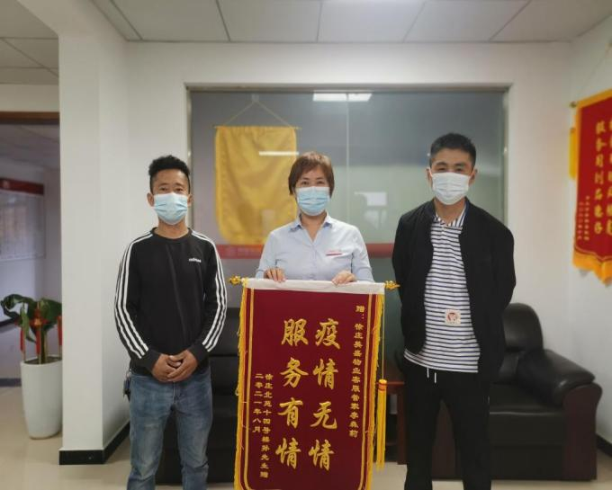 扛過(guò)鄭州最艱難的時(shí)期,一面遲來(lái)的錦旗,滿載沉甸甸的榮譽(yù)來(lái)到徐莊物業(yè)服務(wù)中心,沒(méi)有過(guò)多華麗的語(yǔ)言,只有兩行大字“疫情無(wú)情,服務(wù)有情”。管家李森莉這么久的默默付出,得到業(yè)戶由衷的認(rèn)可,作為一名物業(yè)人,被日常這碎了一地雞毛事務(wù)圍繞的她,這一刻一定是幸福的。業(yè)戶的理解和認(rèn)可,彌足珍貴。